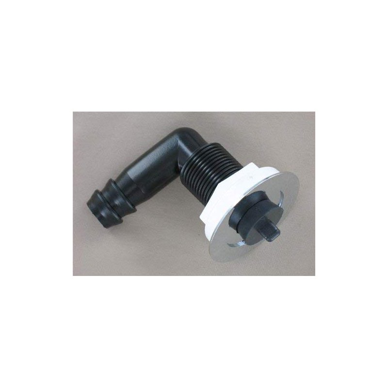 Replacement Sink Drain with 100-Degree Angled Elbow – High Impact Nylon & Chromed Flange Revitalize your sink with our premium replacement drain, engineered to address leaks and enhance functionality while delivering a fresh, modern look. Ideal for replacing worn or leaking drains, this model features a 100-degree angled elbow for optimal drainage and includes a practical stopper. Product Dimensions: Flange Diameter: 2.15 inches Hole Size for Installation: 1.5 inches Below Flange Extension: Approximately 2.5 inches Thread Length: Over 1 inch Key Features: Durable Materials: The fitting is molded from high-impact nylon for superior durability, while the chromed flange adds a shiny, clean finish to complement any sink. Efficient Drainage: The 100-degree angled elbow ensures complete drainage, preventing water accumulation and improving sink functionality. Practical Stopper: Includes a stopper that lets you fill the sink and drains quickly when removed, offering convenience and versatility. Flush Flange Design: The flush flange design, with a 2.15-inch diameter, fits perfectly into a 1.5-inch hole, providing ample space for sealant to ensure a leak-proof seal. Versatile Fit: Extending about 2.5 inches below the flange with over 1 inch of threaded length, this drain accommodates thicker fiberglass sinks. The hose barb fits 3/4" ID marine hose for a secure connection. Made in the USA, this high-quality replacement drain combines functionality with style, ensuring a seamless upgrade for your sink. If this isn’t the exact drain you need, we have a wide selection of options and can source nearly any model to fit your requirements. Order now to upgrade your sink with a reliable, efficient, and stylish drain!