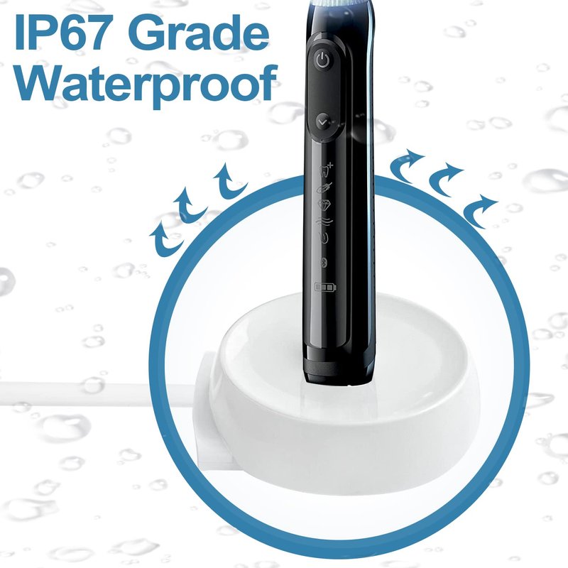 - 【Waterproof Base】Fully sealed and waterproof design, fit for Oral-B Electric toothbrush charger is made of insulated ABS material, IP67 grade waterproof and dust-proof. Easy to clean and it can be used in the bathroom and other humid environments. If it drops into the water and it won't be damaged and still works.