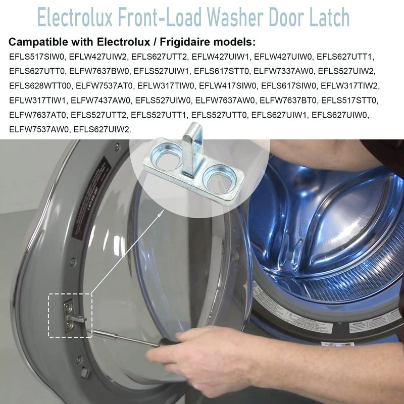 - 【Electrolux Washer Parts Door Latch】Compatible with Electrolux Frigidaire Brands may include Electrolux, Frigidaire, Kenmore, Gibson, Kelvinator, Philco, Tappan, White Westinghouse.Replacement door catch strike for front-load clothing washers, Fit washing machine model AP6031188, 4452319, PS11766033.