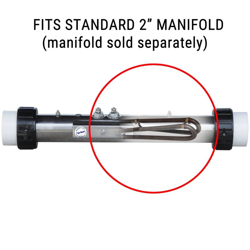 - Fits standard 2" diameter hot tub heater manifold as illustrated