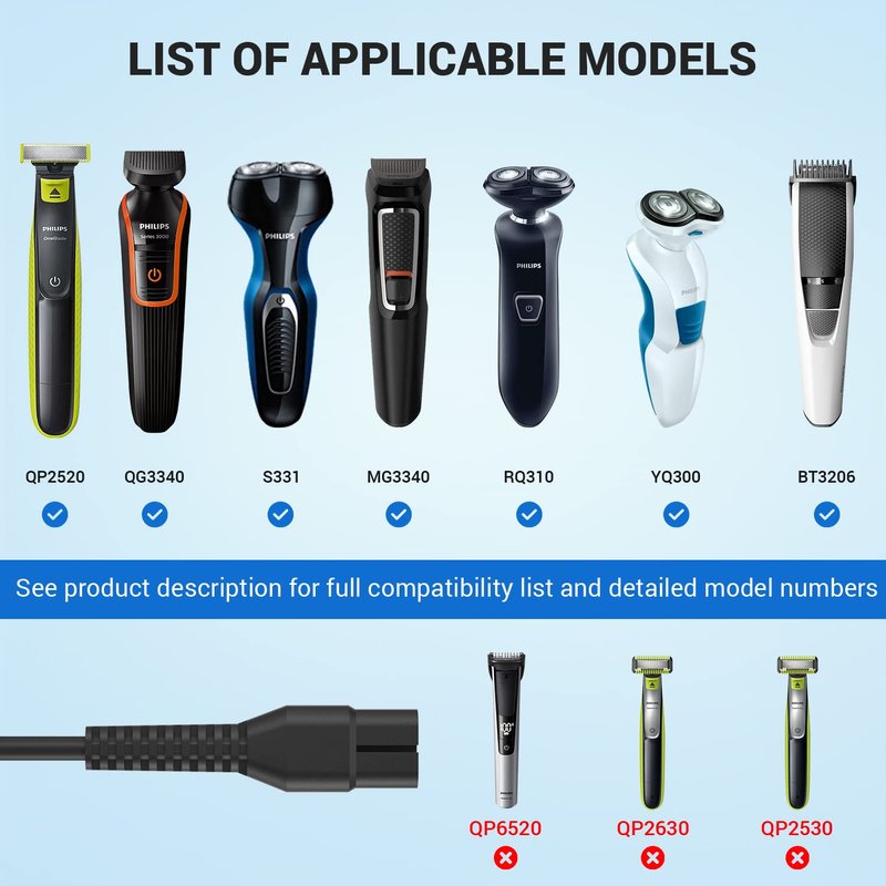 Specially designed: CGGXJP The 4.3V charging cable designed for Philips Norelco Oneblade shavers QP2520. 4.3V 70mA power adapter Fit for Philips Norelco OneBlade QP2520, QP2520/90, QP2520/72, QP2520/70 Trimmer Electric Razor.