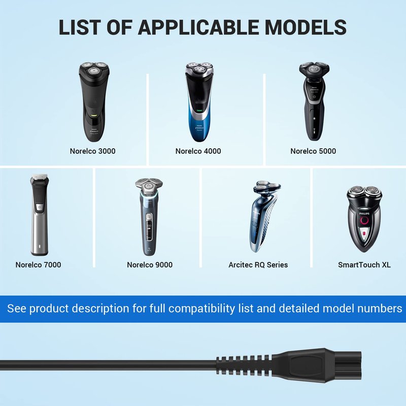 Replacement For philips Norelco charger cord Fit HQ8505 7000 5000 3000 Series 3500 mg5750 mg7750 S1560 Electric Shaver Razor, Aquatec, Arcitec, Multigroom Beard Trimmer & More 15V Power Cord Adapter