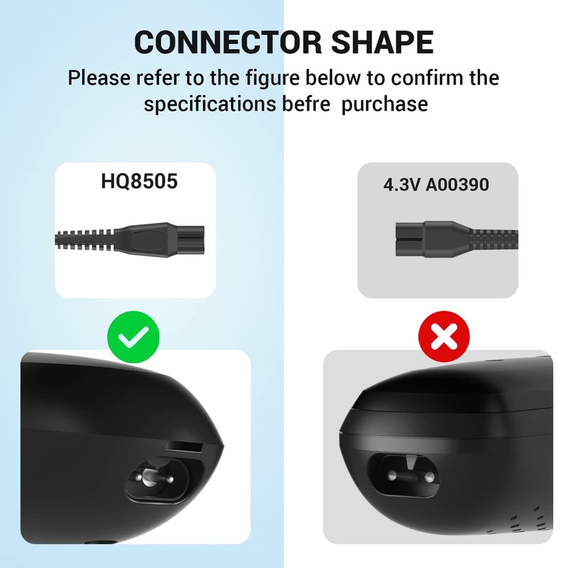 - Compatibility: The 15V 360mA Adapter Power Cord is compatible with for Philips Norelco HQ8505 9000 7000 5000 3000 series MG7790 7750 Electric Shaver Shaver, Arcitec, Aquatec, Multigroom Beard Trimmer.15V 360mA power adapter compatible models HQ8505 HQ-8505, NL9206AD-4, 272217190075, 272217190076 272217190137 4222-039-10972 422203623771. compatible part number HQ8505 AT810/41 AT830 BT5210/42 BT7215/49 PT724/41 PT730/41 QG3364/42 QG3330 QG3330/60 QT4018/49 S7370/84 S9311/84 S9721/84 YS524.