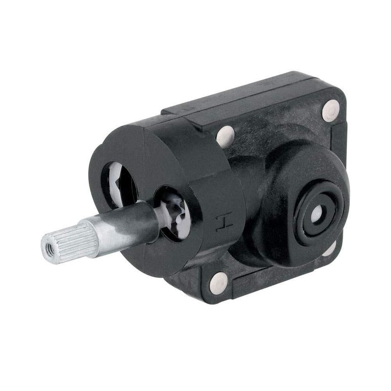 Tempress II PBV pressure balancing cartridge assembly. Durable metal construction with scratch and tarnish-resistant surface. Total Length (from the end of the chrome spindle to the other end of the cartridge): 85mm Height: 46.5mm (at seal) Diameter at Widest Point: 45.6mm (at seal) Top Spline Diameter: 7.6mm Top Spline Teeth / Notches: 20 (this has been flattened off so not all splines are visible) Compatible with the following cartridges. Grohe (47080000), Newport, Cal Faucets