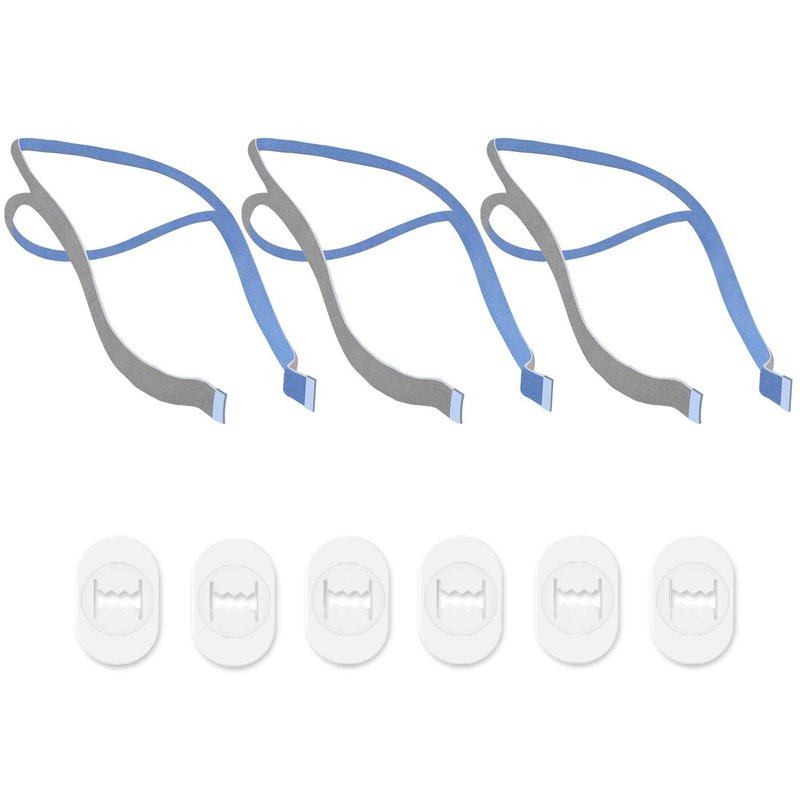 Replacement Headgear for The P10 Nasal Pillow Mask Why choose Wiscky Replacement Headgear strap? Our Replacement headgear for the P10 promotes a good and comfortable fit that will last for a long period of time. They come with adjustment clips to use in case they stretch over time. To use the clips, double the headgear, insert it through the clip, adjust to desired fit and give them a little friendly tug the other way to lock it in its place. Something you need to know: Headgear should be replaced every 6 months to ensure the fit and seal is just right with each use Product advantage: 1: Easy Fit and Quick Assembly 2: Simple, Effective, Award-Winning Design 3: Durable, lightweight flexi-tube allows patient greater freedom of movement 4: QuickFit Elastic Headgear delivers snug fit without cumbersome Velcro tabs or clips How to wash the product? We Recommend Hand washing the Headgear strap weekly using hot water and mild soap, then rinse well and air dry. Specifications: Material: Headgear – premium nylon, Clips – high grade plastic. Size: One size fits all Color: Grey (intended for exterior) and Blue (intended for interior) Package Contents: 2 x Replacement Straps 4 x Free adjustment Clips 100% Warranty: Get your Nasal Pillow Replacement headgear for the P10 Nasal Pillow mask.