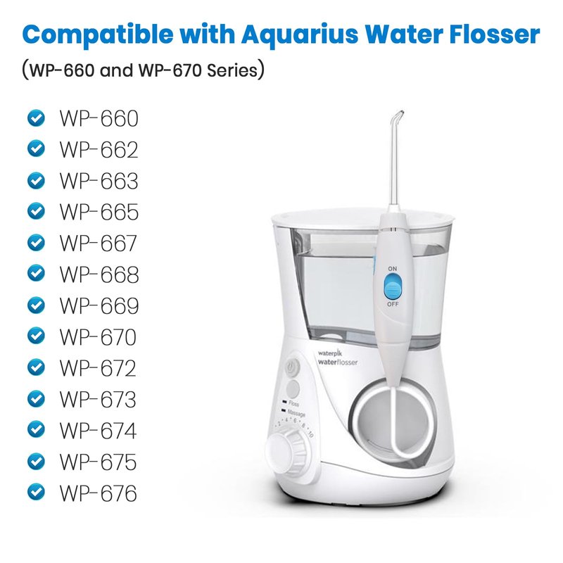 - Perfect Fit: Designed specifically for the Aquarius Water Flosser WP-660 and WP-670 Series, this replacement hose and handle assembly offers a seamless fit and hassle-free installation. Restore your flosser's performance and enjoy consistent water pressure for a thorough clean every time.