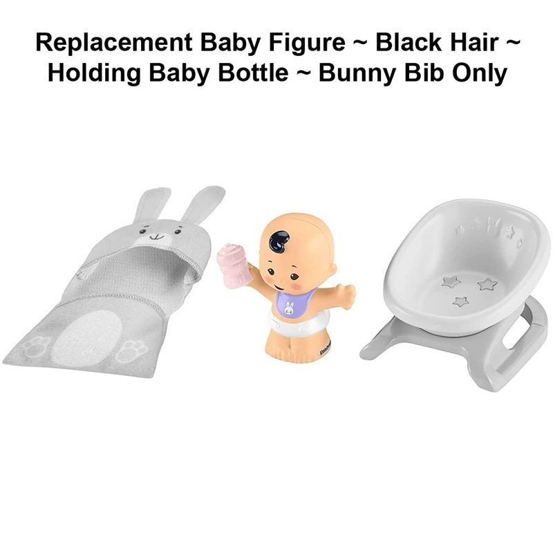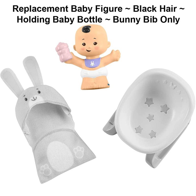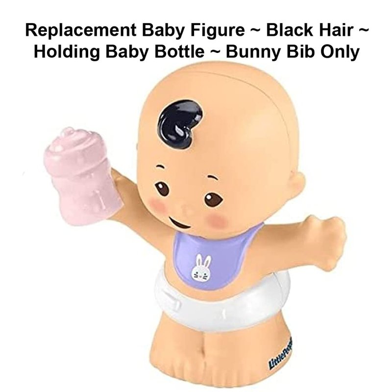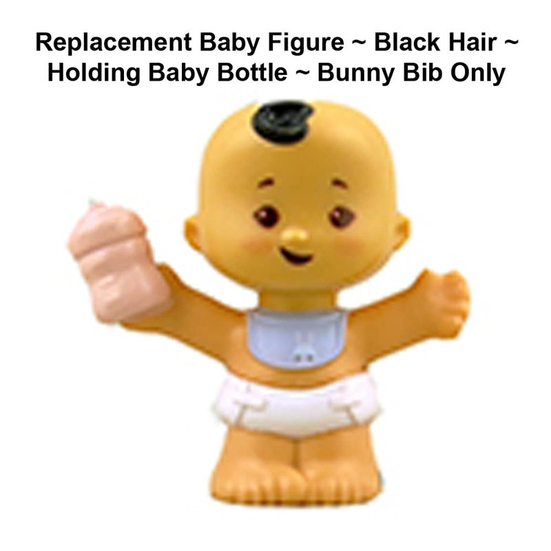 Replacement Part for Fisher-Price Little People Bundle 'n Play Playset - GKY43 ~ Replacement Baby Figure ~ Black Hair ~ Holding Baby Bottle ~ Bunny Bib