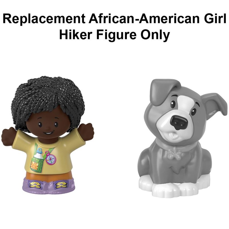 What’s included?Replacement African-American Girl Hiker Figure With Water Bottle Print - Works great with any Little People PlaysetThis replacement Figure works with the Fisher-Price Little People Hiker and Dog - HBW73 Described Below - Listing is for Figure OnlyLittle People character figures from Fisher-Price are sized just right for toddlers to grasp and move as they create their own imaginative stories. Featuring real-life characters, as well as a variety of fashions, hair styles and more, these Little People figure sets bring familiar faces from the great big world into the palms of kids' little hands.This set is sold separately and is not included with the replacement Figure - Description is for Fisher-Price Little People Hiker and Dog identification purposes only.Oh no, where did it go?Isn't it just the worst when you lose the most important part to a toy?Never fear, we've got you covered!We carry a large variety of replacement parts for your toy or baby product.This is a replacement Figure for Fisher-Price Little People Hiker and Dog – Item # HBW73.