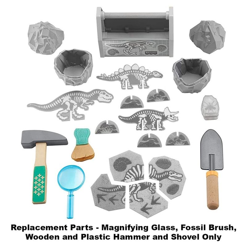 Replacement Parts for Fisher-Price Dinosaur Discovery Playset - GMN42 ~ Replacement Tool Bag Includes Magnifying Glass, Fossil Brush, Wooden and Plastic Hammer and Shovel