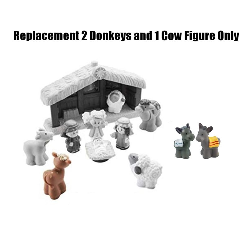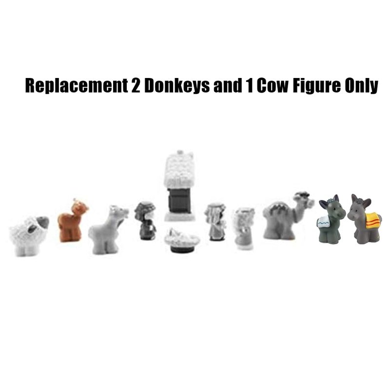 Replacement Parts for Little-People Christmas Nativity Playset - Replacement 2 Donkeys and 1 Cow Figure ~ Works with FPT07, DPX53, J2404 and Many Other Sets