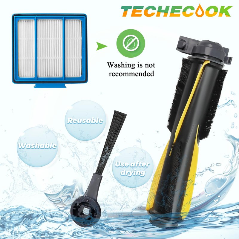 Replacement Parts for Shark IQ Robot Vacuum by Techecook- Replace R101AE RV1001AE shark robot vacuum brushes - Includes 6 x Side Brushes, 3 x Hepa Filters,1 x Main Rolling Brush and 1 x Cleaning Brush