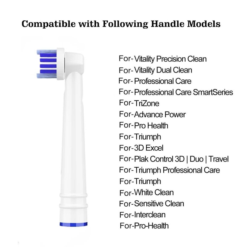 - Works on Most handle - The Electric toothbrush heads compatible with the entire lineup of Oral-B rechargeable handles, except for Oral-B electric toothbrushes. Fits for Vitality, Triumph, Genius, Professional, and More.