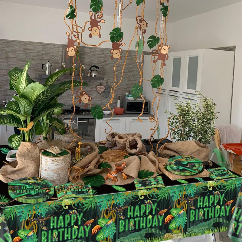 - More Time to Party: Just spread the reptile birthday party tablecloth on the table to protect your table from stains and scratches. Using these jungle swamp wilderness party supplies, you can simply dispose of them after the party. Spend more time celebrating a party, instead of cleaning up!