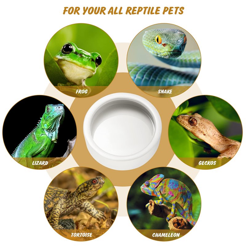 - ✔High Density Material — This reptile food feeder is made of high-density ceramic and harmless, solid and durable, nonporous, smooth surface, safe to your pet
