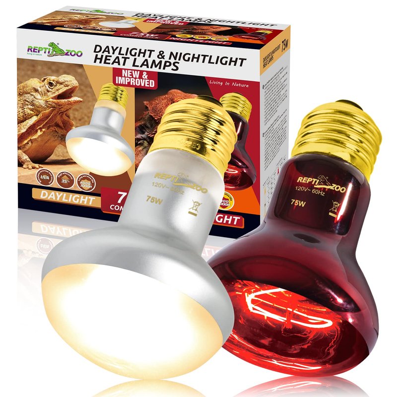 REPTIZOO 75W Reptile Heat Lamp Bulb, 2PCS Day & Night Basking Spot Light Combo Pack Includes Infrared Heat Lamp and UVA Daylight Heating Lamp Basking Light