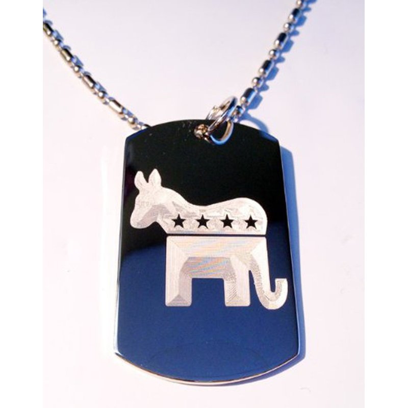 Republican Democrat Democratic Party Donkey Elephant Party Political Vote Election 2012 Logo Symbols - Military Dog Tag Luggage Tag Key Chain Keychain Metal Chain Necklace
