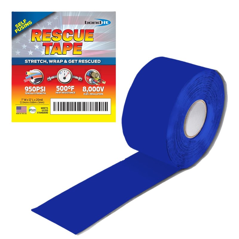Rescue Tape, Self-Fusing Silicone Tape, Emergency Plumbing Pipe & Radiator Hose Repair, Electrical Insulation, Military Std, 1" x12', Blue