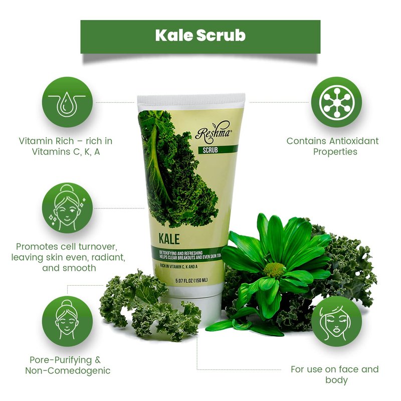 Reshma Beauty Kale Scrub | Dual Action Cleanser Face & Body Scrub | Gentle for All Skin Types and Dull Skin|Purifying and Hydrating| Enhances Natural Glow| Cruelty Free (Pack of 1), 5.07 oz