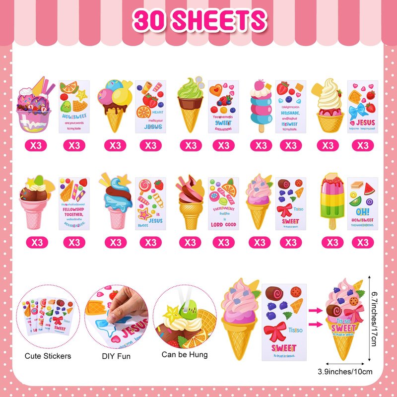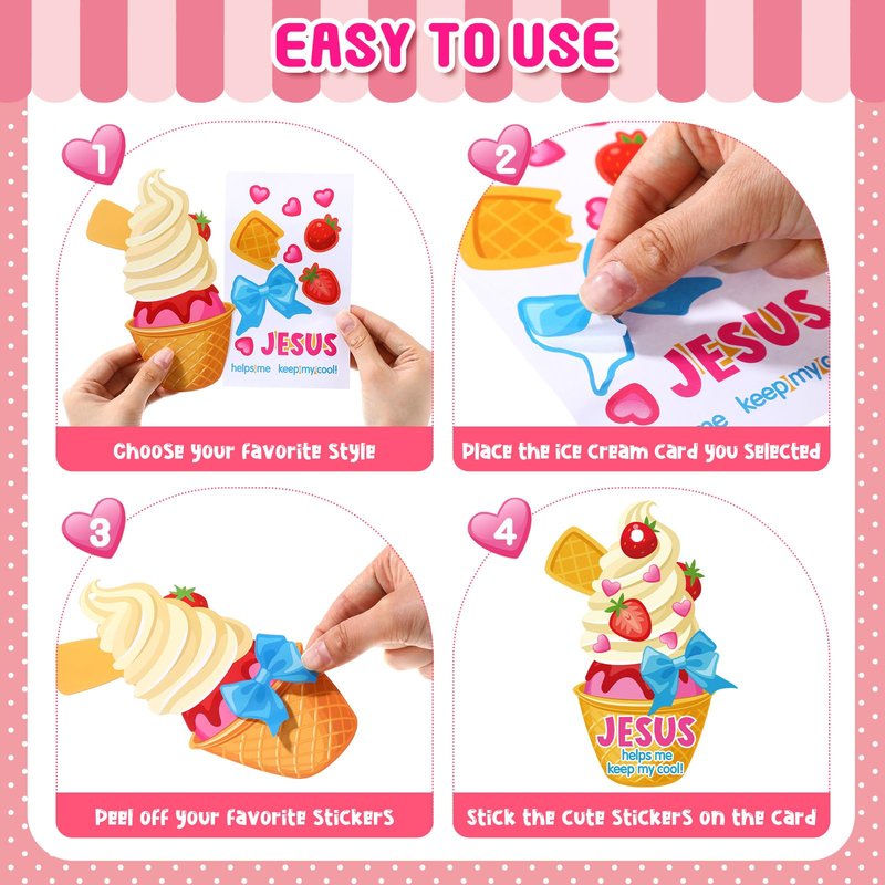 - Ideal Gifts: these religious crafts bulk are suitable for religious event, ice cream themed parties, birthday parties, classroom activities, art craft classes, classroom Sunday supplies, summer party favors and so on; The Jesus ice cream stickers set are also ideal for notebooks, journals, scrapbooking, calendars, tables and more; This will create a memorable experience to the teens