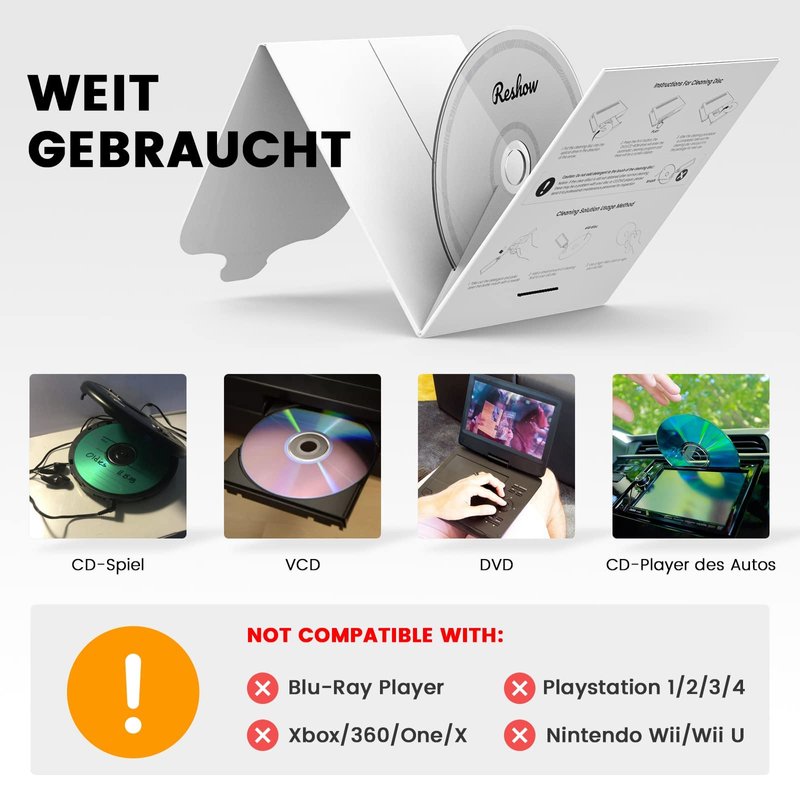 - 【What it can do】The lens in a DVD / CD player eventually gets dusty; this especially is true if you move CDs between your indoor and car stereos. Dust reduces the optical signal and usually causes even clean discs to skip; The Reshow lens cleaner disc solves the problem. It is a nice addition to any physical media set up, especially when your hardware starts to get on the old side.