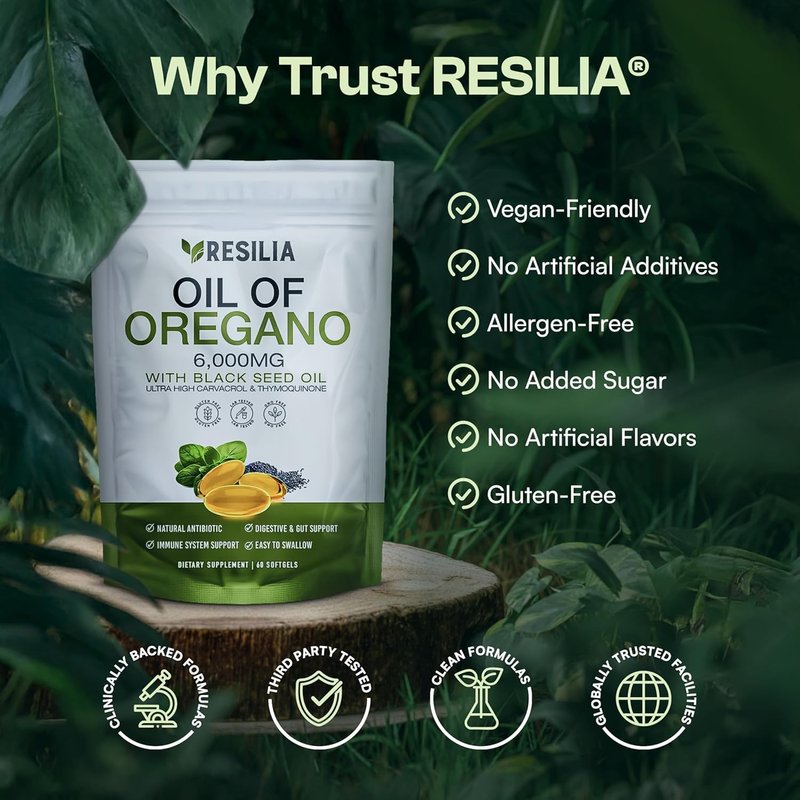 Resilia Oil Of Oregano Softgels with Black Seed Oil 6000mg – Organic Oregano Oil Capsules for Immune & Digestive Support – Non-GMO, Gluten-Free Softgels – Natural Herbal Wellness Supplement