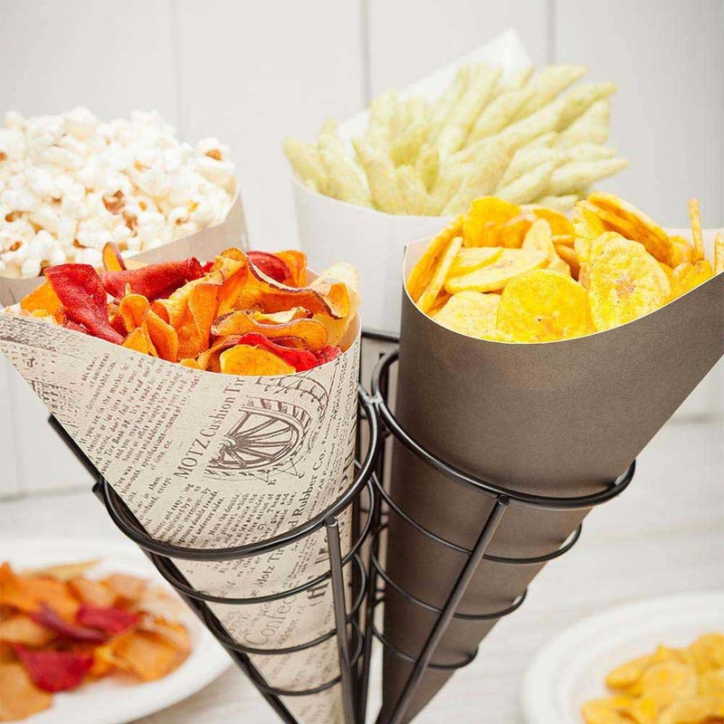- FIT FOR ANY OCCASION: This food cone holder is great for serving a variety of savory finger foods at your restaurant or for easily serving an assortment of decadent desserts your next catering event.