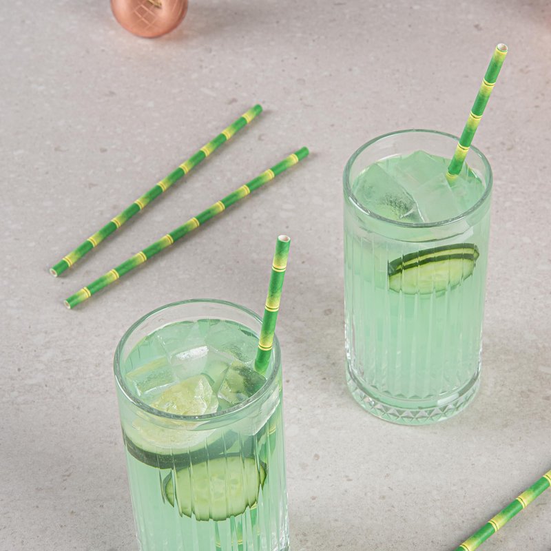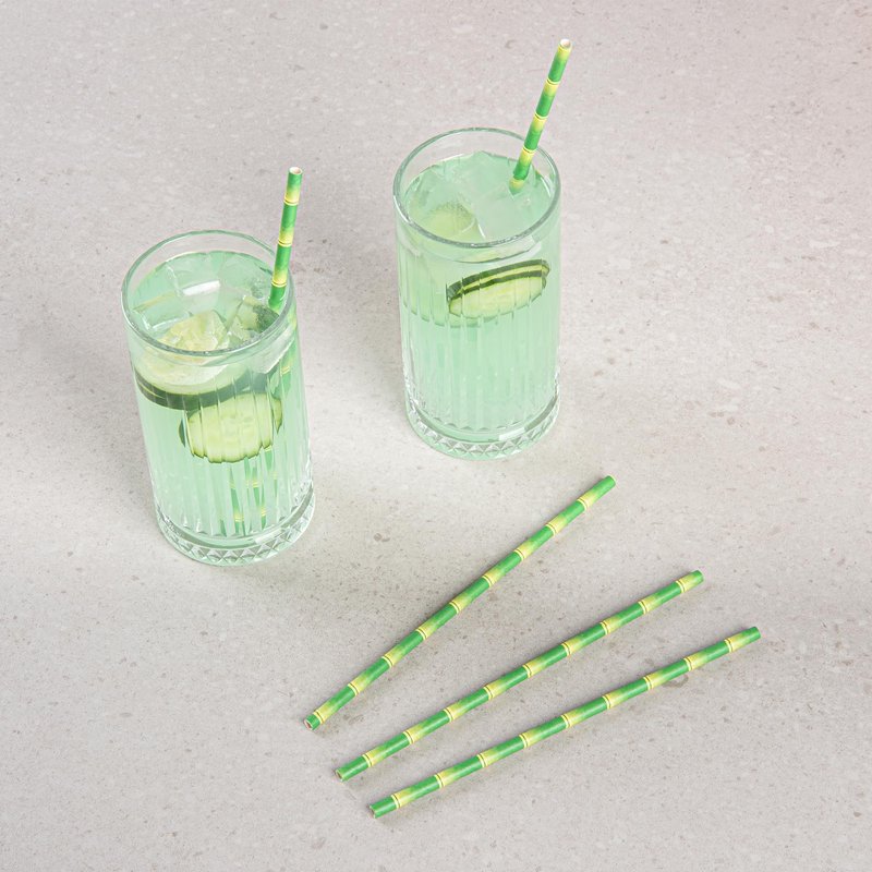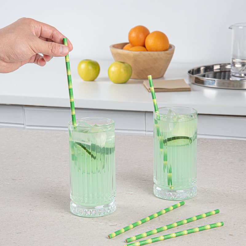 Restaurantware 7.8 Inch Paper Straws For Drinking 100 Sturdy Eco-Friendly Paper Straws - Premium Bamboo Stalk Design Green Paper DurablePaper Straws Vibrant Colors For Cold Drinks