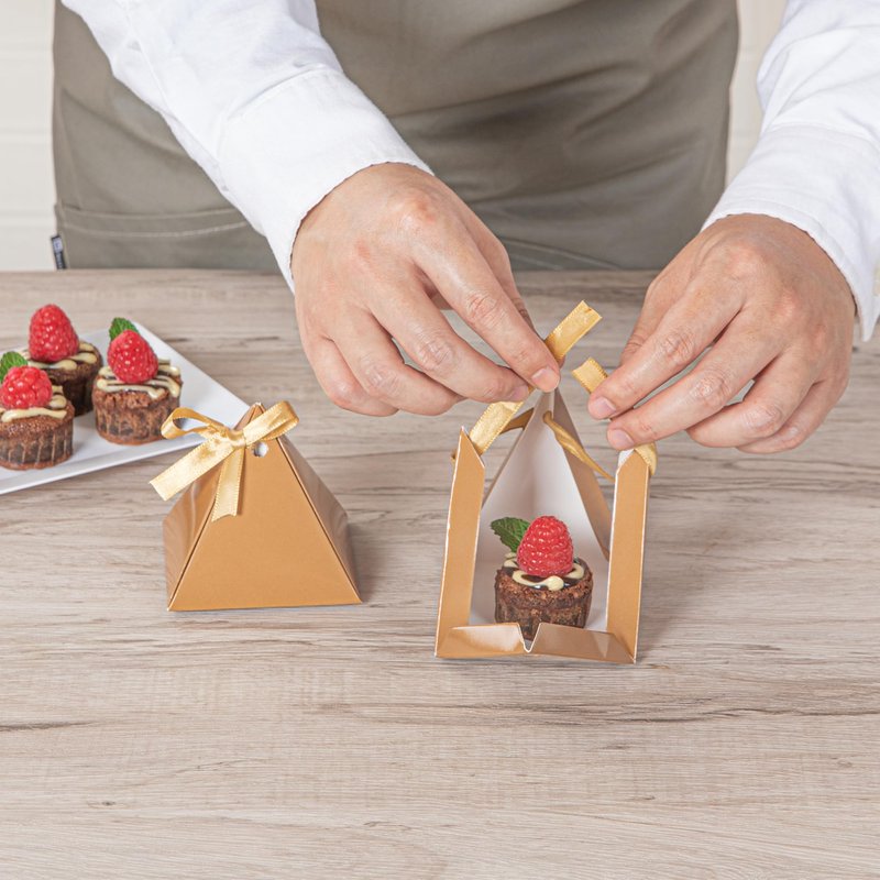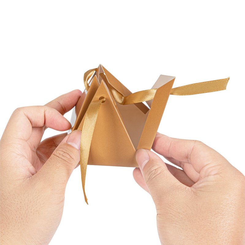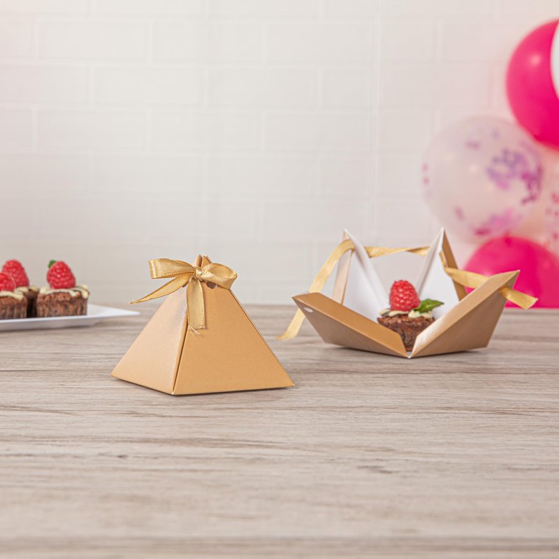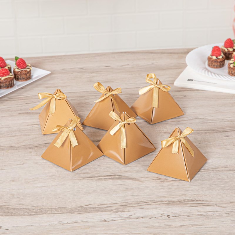 - BROWN PYRAMID DESIGN: Fashioned with a chic pyramid shape, these party favor containers upgrade your return gift presentations with their adorable ears that stick out. Enhance your favor look!
