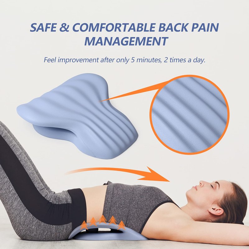 Sitting in an office chair all day is uncomfortable. Chronic back pain can cause migraines, stress, and affect your mood. Care for your body relieve tension in your neck and back by using this stretcher daily. Just ten minutes of regular use improves posture, promotes relaxation, and increases flexibility. Recommended by chiropractors, physical therapists, and personal trainers because of its proven ability to increase mobility and promote healing. Firm and flexible spikes made of high density EVA foam provide the health benefits of a massage , and the curved design fits comfortably under your back as you lie down, providing a gentle stretch to reverse the effects of bodily stress. sciatica pain relief pillow