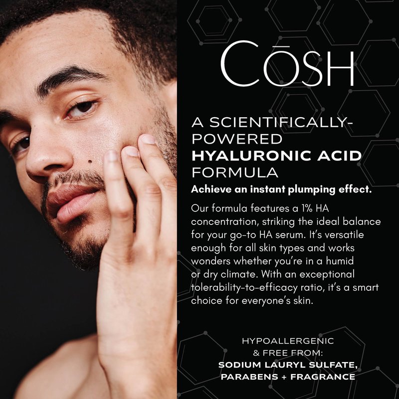 - HYALURONIC ACID FORMULA: Unlike Hyaluronic Acid, CŌSH Youth Serum is enriched with additional that provide enhanced benefits. This "loaded" formula offers superior hydration and rejuvenation, making a marked difference in your skin's appearance. It’s and for.