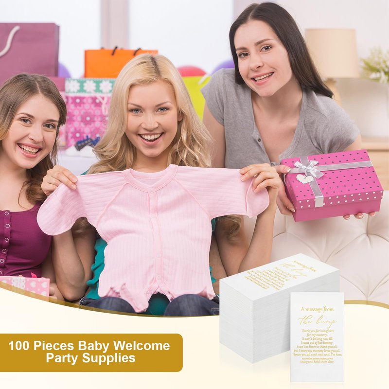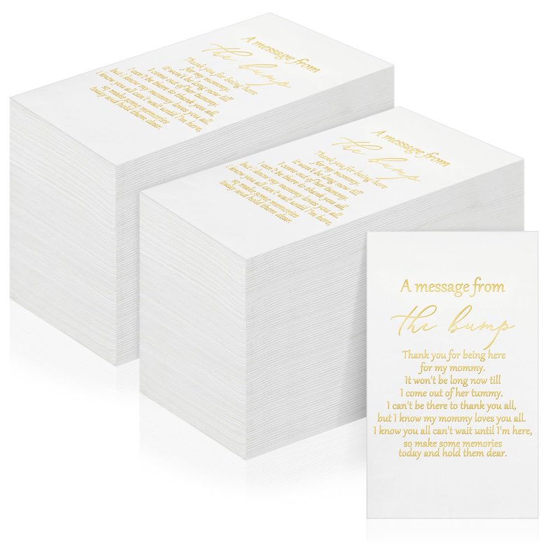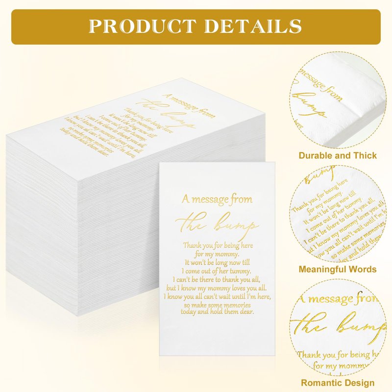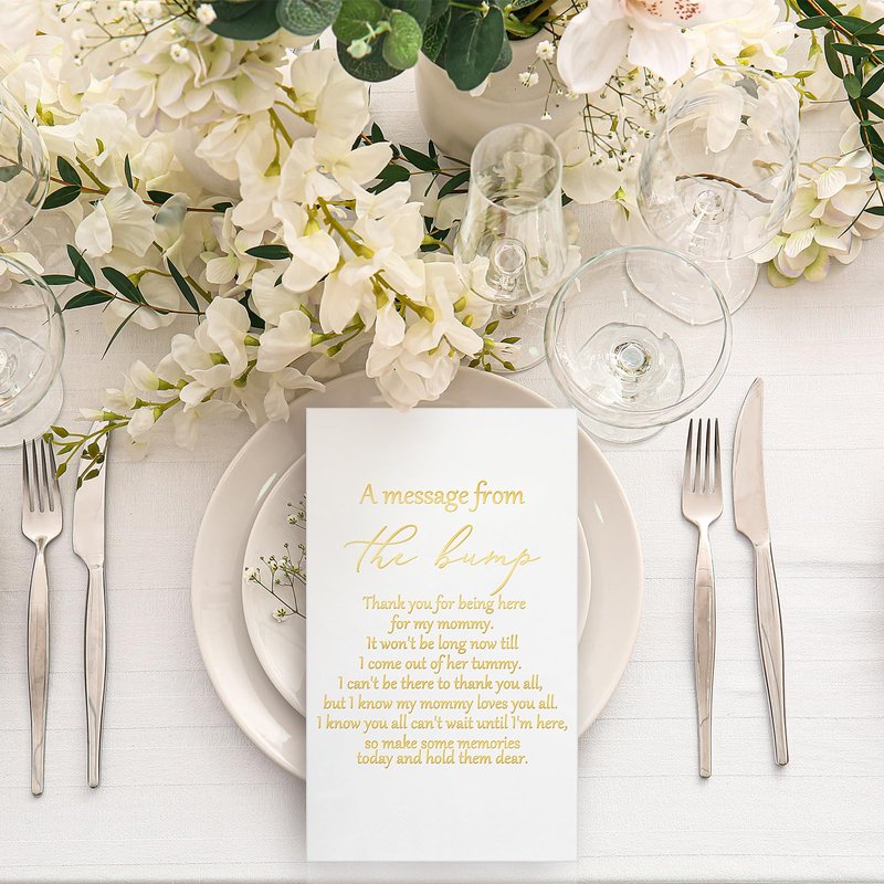- Appreciation Phrases: these baby napkins are printed with touching words[a message from the bump, thank you for being here for my mommy], adding an emotional angle to your party; These gentle reminders serve to enhance the mood, making your event more resonating and creating lasting memories