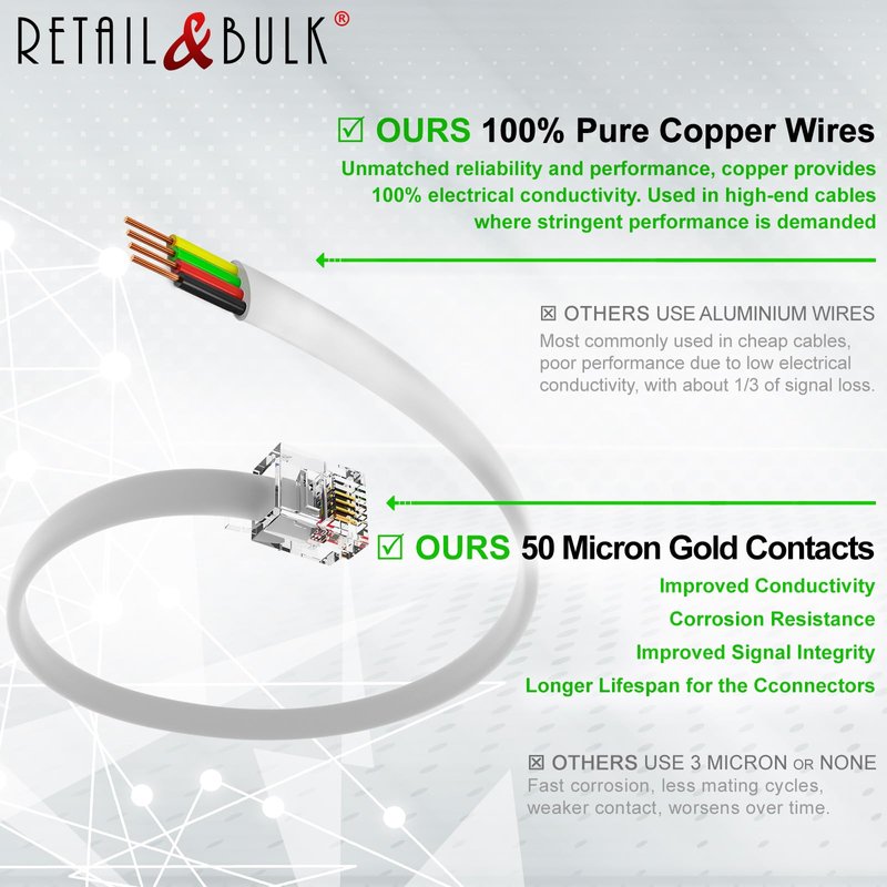 ✅ Four-conductor (6P4C) design allows for operation of a 2-line phone