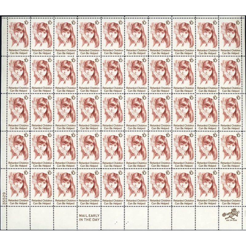 "Retarded Child" Full Sheet of 50 X 10 Cent Us Postage Stamps Scot #1549