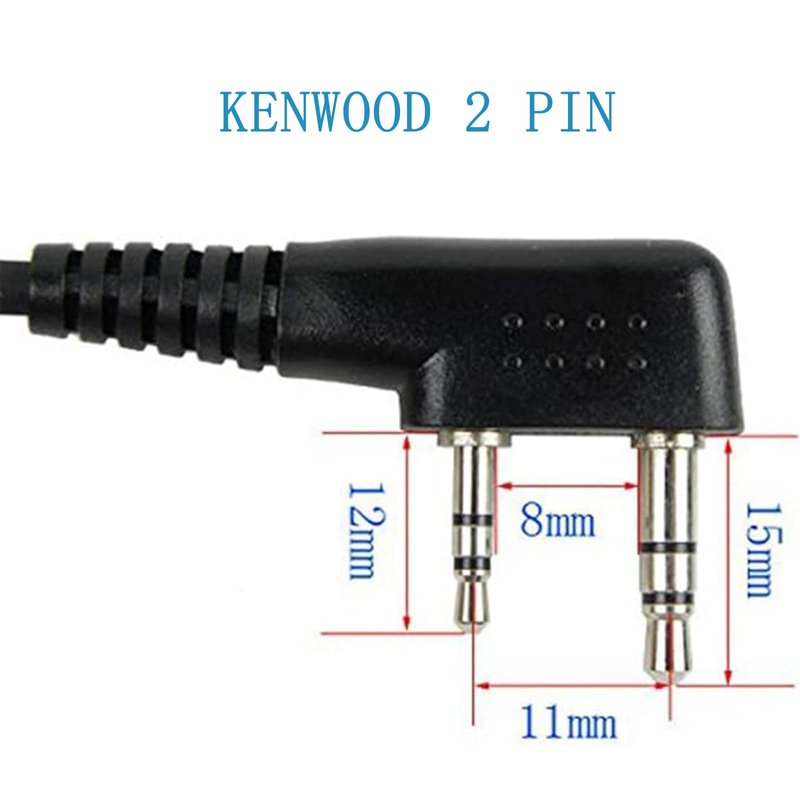 - K head plug 2 pin; Ear 3.5mm stereo of top pin and mic 2.5mm stereo of bottom pin