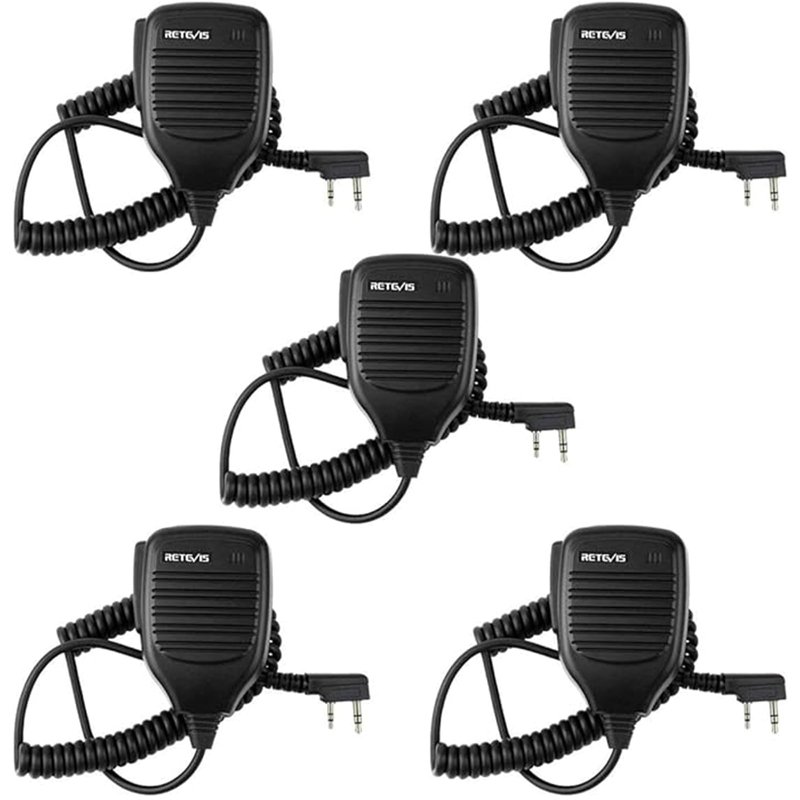 Retevis 2 Pin Shoulder Mic Speaker, Walkie Talkie Mic, Compatible with Retevis H-777 RT22 RT68 RT21 H777S RT85 RT17 RT19 RT15 BAOFENG UV-5R BF-F8HP Samcom pxton TIDRADIO Kenwood Walkie Talkie (5 Pack)