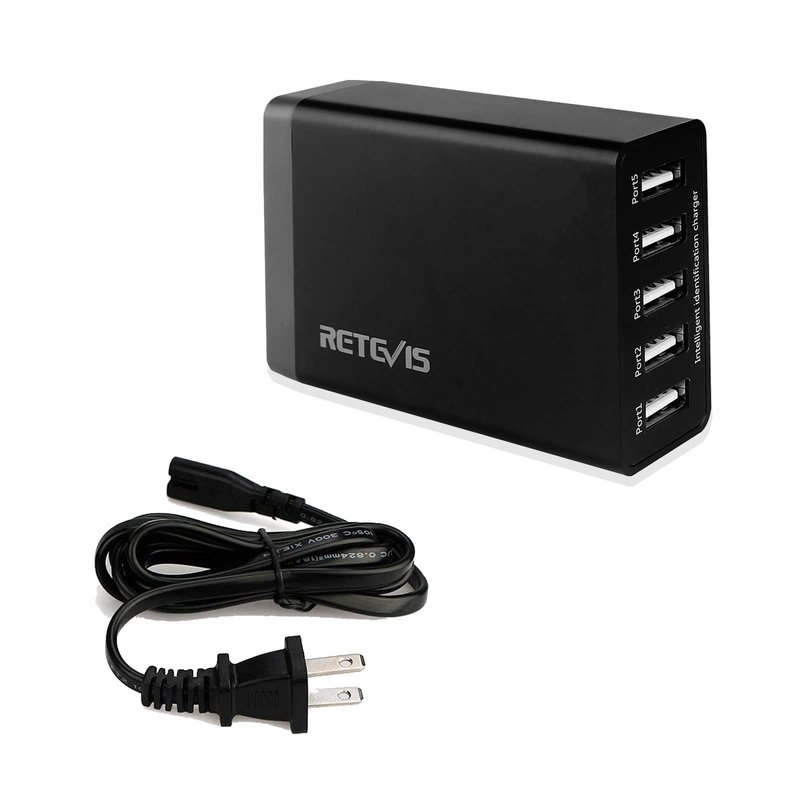 Retevis 5-Port USB Wall Charger Radio Charging Station Compatible with RT68 RB28 RT19 RT22P NR10 RT18 RT22S H777 RB89 RT86 RT45P RB29 Baofeng Cobra HYT Walkie Talkies and iPhone (1 Pack)