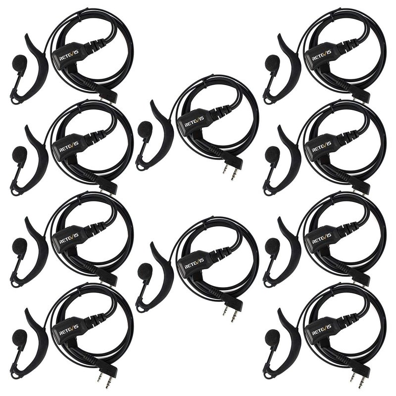 Retevis Walkie Talkie Earpiece with Mic G Shape 2 Pin Adjustable Volume Headset Compatible with Retevis H-777 RT22 RT21 Baofeng UV-5R 888S 2 Way Radio(10 Pack)