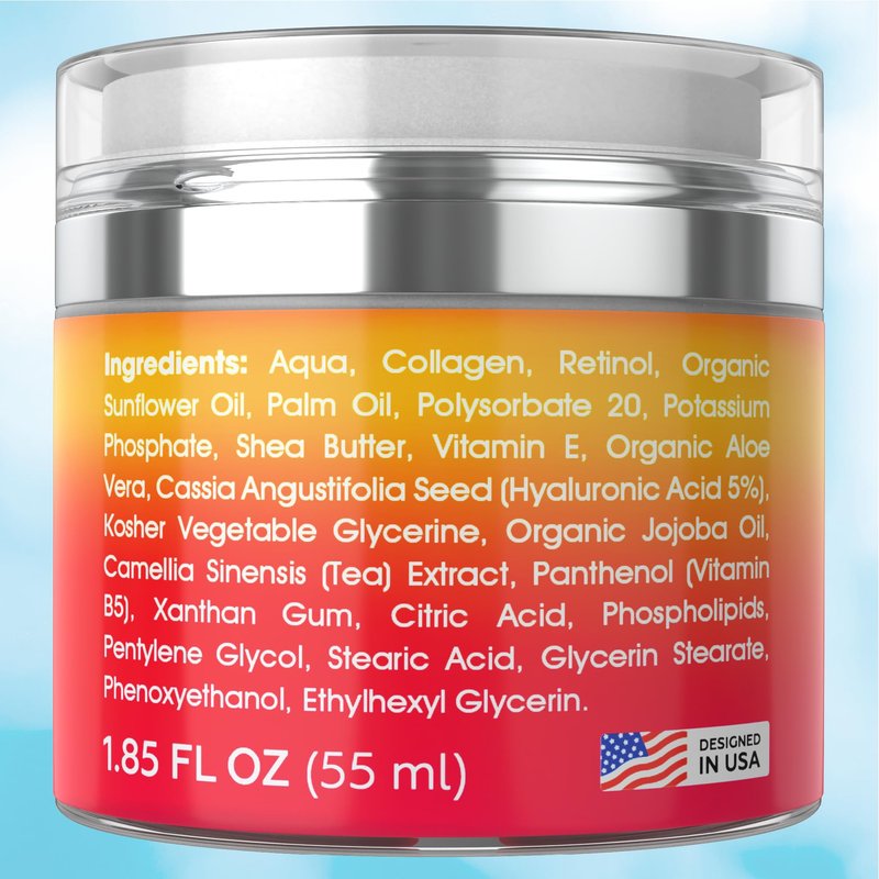 - Blemishes, Sagging Skin, Wrinkles and Fine Lines - forget all these scary words, as well as ineffective procedures that leave the skin dry and irritated without making progress; Our collagen moisturizer for face with 1% retinol provides a long-term effect, including firming, tightening of tissues and cleansing the skin surface of all imperfections