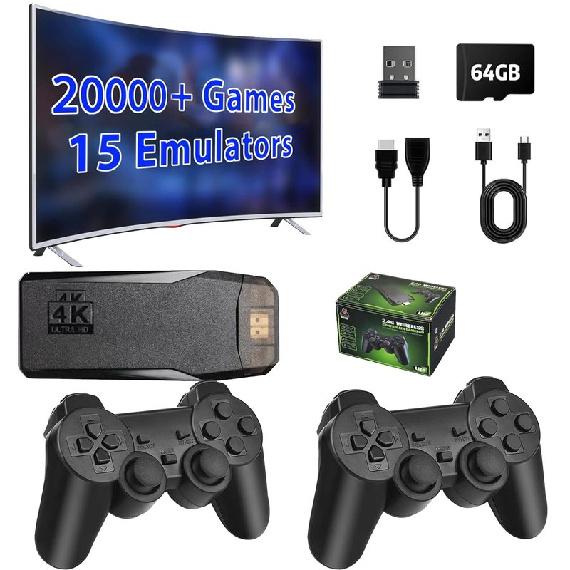 Retro Gaming Console Classic M8 64G Wireless Game Stick, 20000+ Games, 4K HDMI Output Plug & Play Handheld Game Console with 2.4G Wireless Controller Gamepad, for Christmas Birthday Gifts