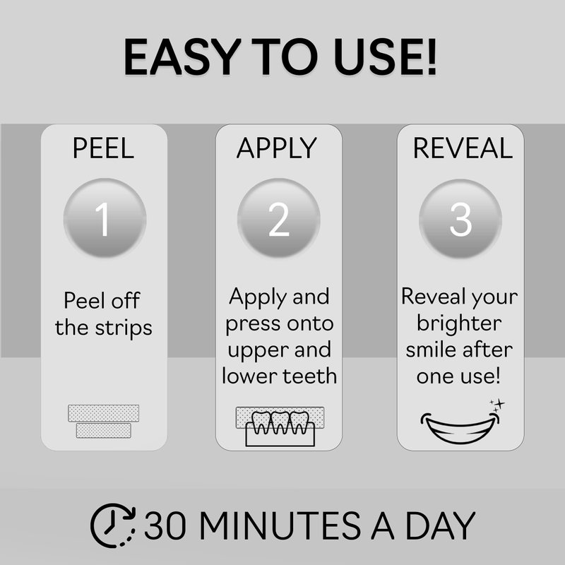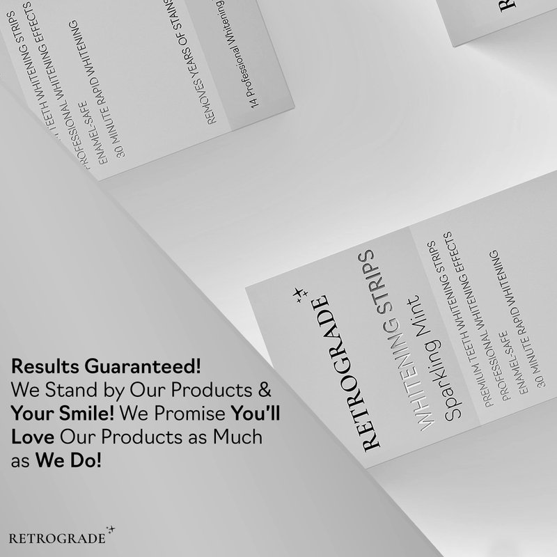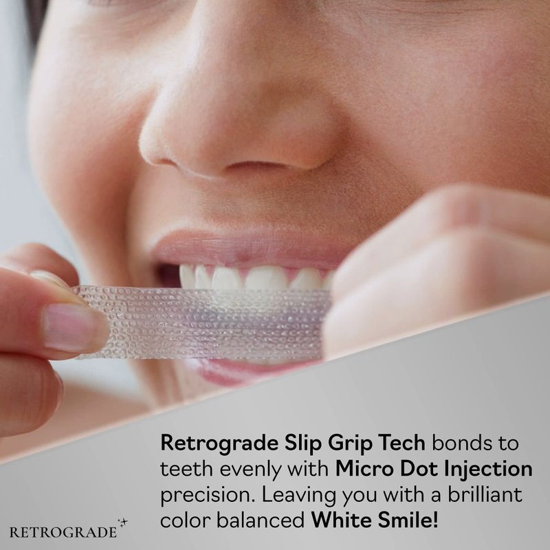 Whiten your teeth in the comfort of your home! Retrograde Teeth Whitening strips are designed to whiten like a professional-level teeth whitening treatment at-home. The Advanced Retro Layer Technology provides a comfortable, no-slip grip means the strips stay put until you take them off. Retrograde teeth whitening will give you a 100% noticeably whiter smile, guaranteed. This enamel-safe, at-home teeth whitening kit will make your teeth 12 levels whiter. Simply apply Retrograde for 30 minutes a day for 14 days. This pack includes 28 teeth whitening strips packs, 14 for your top teeth and 14 for your bottom teeth, to be used over the course of 14 days. Take your smile back with Retrograde teeth whitening!