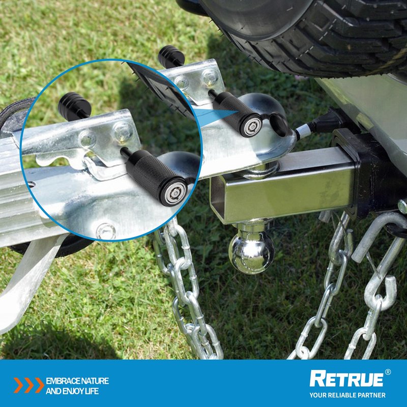 RETRUE Trailer Tongue Coupler Lock, Dia 1/4 Inch, 3-1/2 Inch Span Trailer Hitch Lock for Latch-Type Coupler, Tow Boat RV Truck Car's Black