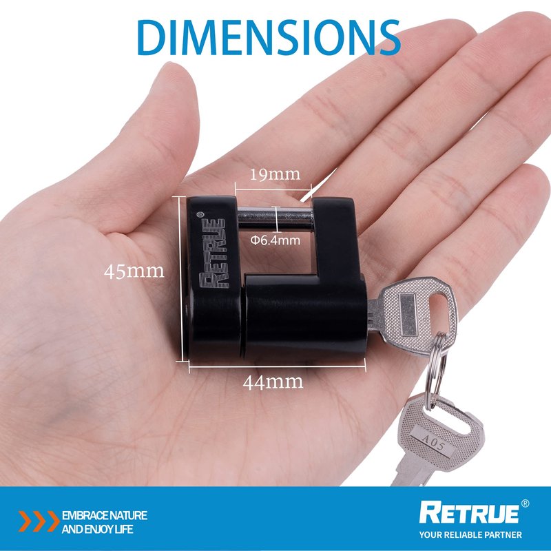 Retrue Trailer Hitch Coupler Locking Pin Design:1/4 Inch diameter tongue lock pin with effective length 3/4 Inch. Small size for easy carrying. Keeping the coupler lock in your pocket or vehicle anywhere that is fine. Please verify dimension and length of the pin you want before purchasing our coupler hitch lock pin. How To Operate Our Trailer Tongue Coupler Lock: Spinning the flat key 5-7 times to open or close the hitch lock. Security Of Our Coupler Locking Pin: This trailer lock is made of high-strength steel to deter theft. The hitch lock is coated with black electrophoretic paint to prevent corrosion. Coupler Locking Hitch Pin's Application: Tow Trailer Boat RV Truck Car Retrue, a reliable brand in Hitch Sercurity Industry, we offer 30-day money-back for any reason, 12-month warranty for quality-related issues.