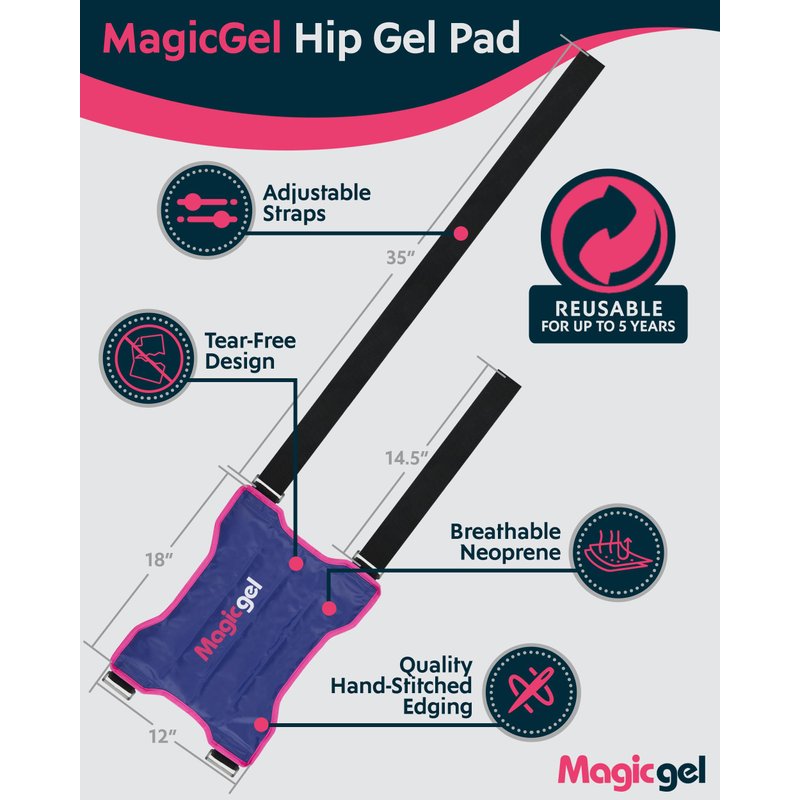 Reusable Cold Pack for Hip Bursitis, Replacement Surgery and Hip Flexor Pain. Ice Pack Wrap for Inflammation, Swelling Relief (by Magic Gel)