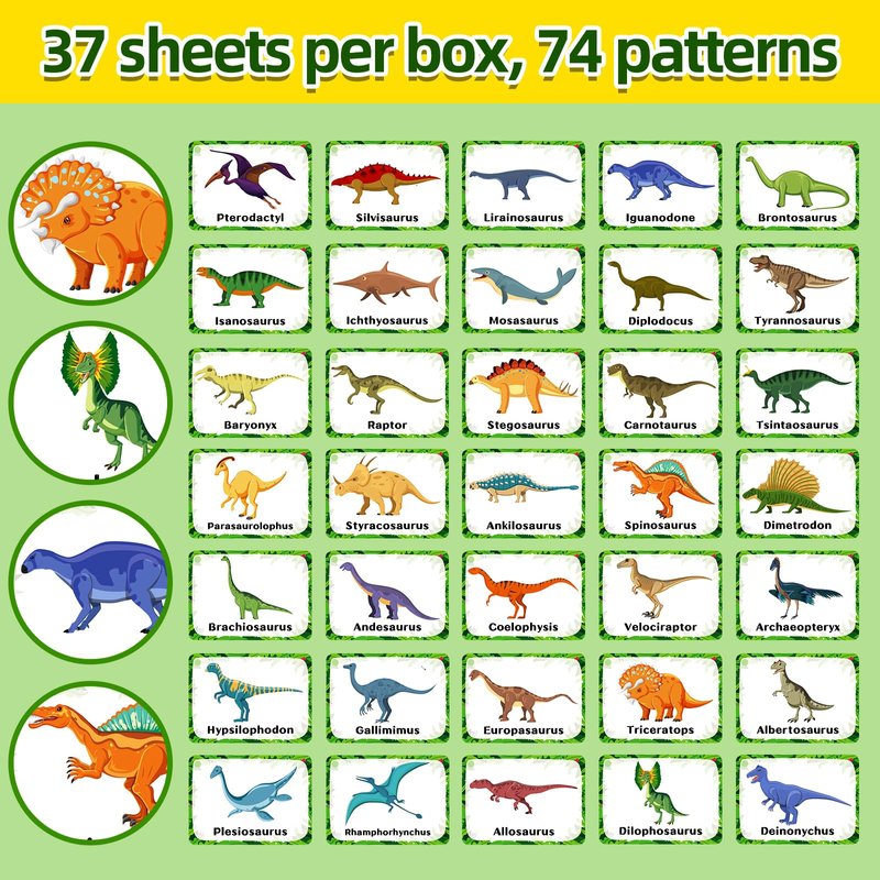 37 PCS Dinosaurs Flash Cards Cartoon Dinosaur Flashcard