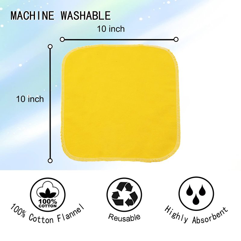 - COLORFUL COMBINATION PAPERLESS TOWELS- Each set is equipped with 6 colors, a total of 30 pieces , 10 X 10 inch reusable Eco Friendly paperless Towels; Each piece of paperless Towels is made of 100% cotton flannel.