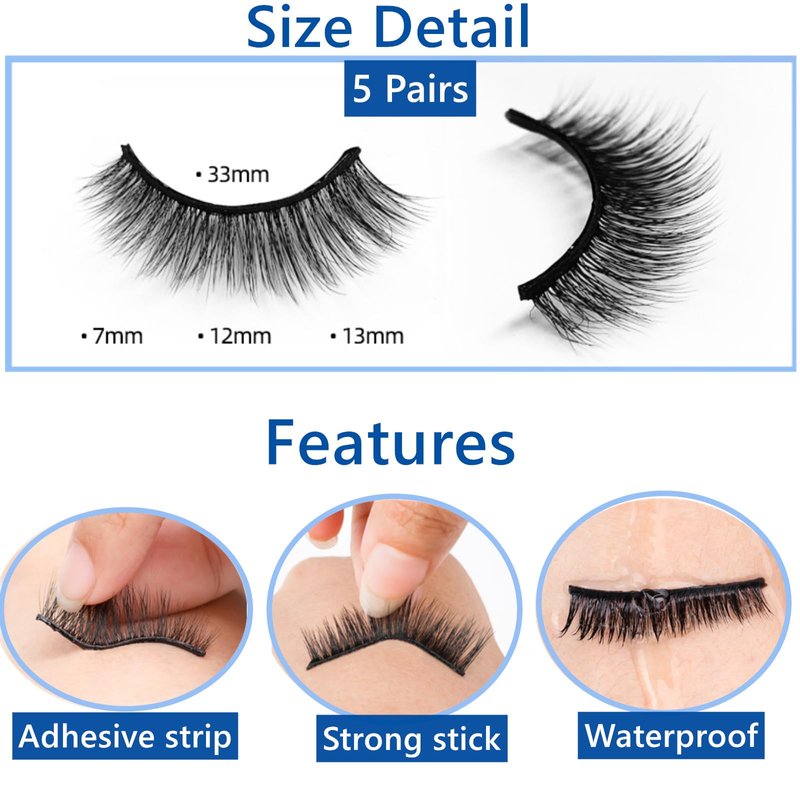 - WASHABLE: Self Adhesive Eyelashes are washable and can be used 3-5 times as long as they are used and stored properly. You can rinse it with warm water, then gently dry it with a hair dryer and put it in the storage box. If the two self-adhesive strips don't stick, you can remove the self-adhesive strips, apply the replacement adhesive strips or apply your own glue and reuse them as normal false eyelashes