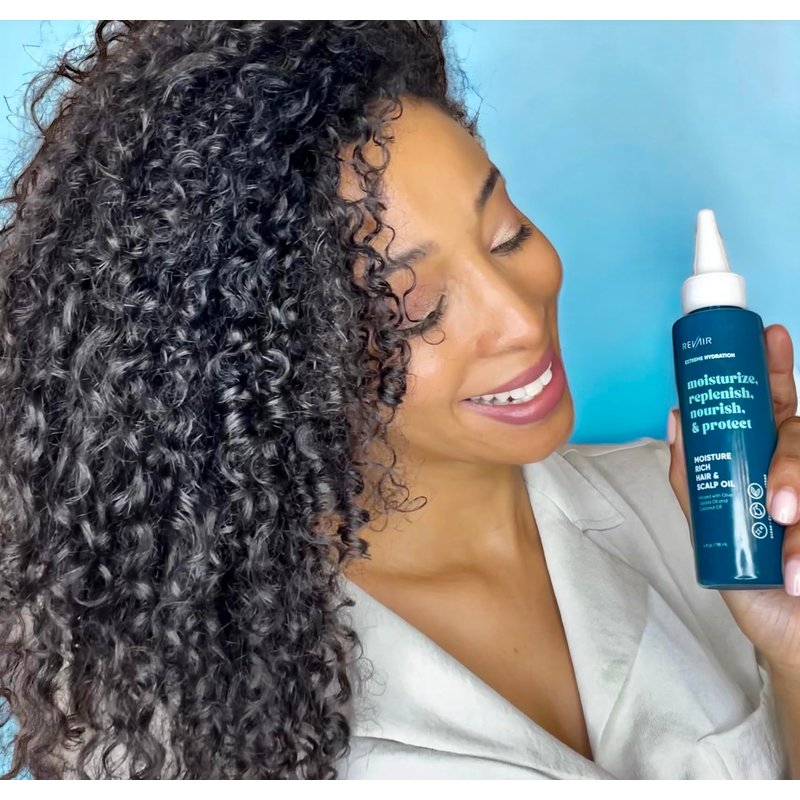 RevAir is committed to healthy, shining, beautiful hair, and we show that commitment by using the highest quality ingredients. We want your hair to feel healthy, nourished, and moisturized whether you have straight, curly, or coily hair. Try our Moisture Rich Hair & Scalp Oil and the rest of the Hydration Collection (sold separately) to see the difference salon-quality hair care can make for you.