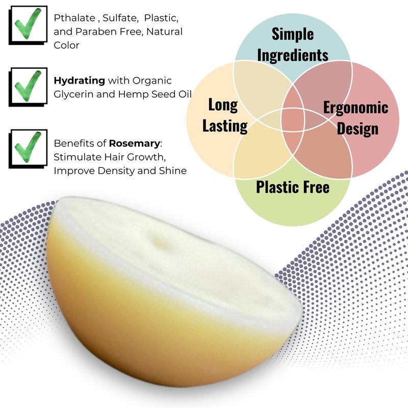🟢Embrace the revitalizing power of nature with Revival Pharms Hair Dot: Hydrating Hair Bar. This luxurious solid conditioner bar is a hydrating oasis for your tresses, enriched with organic glycerin and infused with the invigorating scent of rosemary and lime. 🟢Weighing 2.3 oz (65 g), this indulgent blend pampers your locks, leaving them feeling silky soft, deeply moisturized, and delicately fragranced. Formulated with care, this conditioner bar harnesses the hydrating power of organic glycerin to replenish moisture and restore your hair's natural radiance. 🟢Embrace nature and experience the transformative power of this revitalizing hair care essential. 🟢Compact and travel-friendly, this solid shampoo bars are designed to last, offering up to 60 washes per bar without breaking due to our unique Hair Dot design.