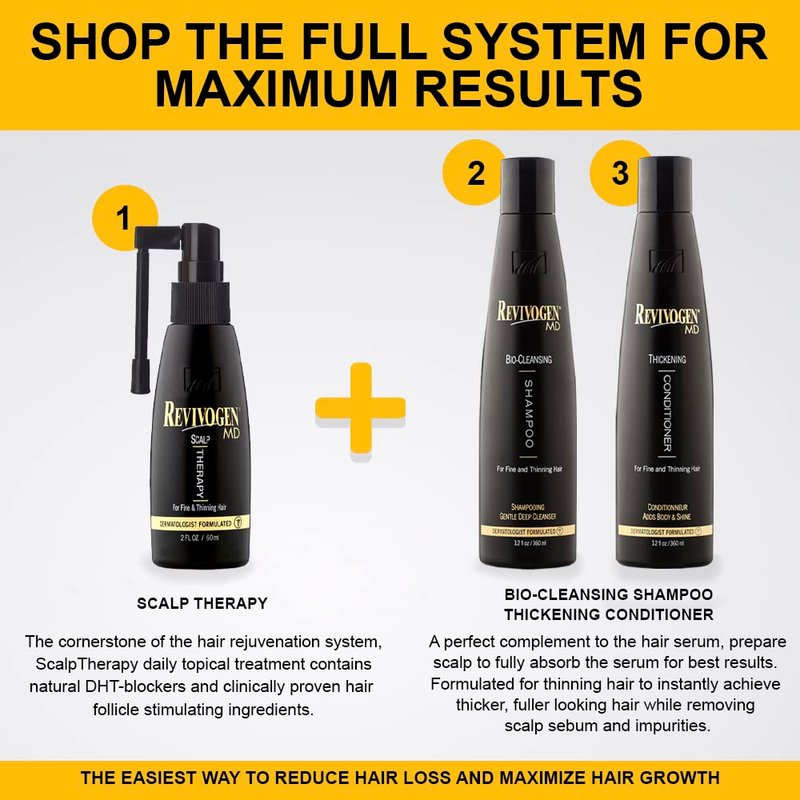 - CONVENIENT SIZE: Each unit of Revivogen MD Bio-Cleansing Shampoo and Conditioner comes in a generous 12 oz. bottle, ensuring that users have an ample supply to incorporate into their daily hair care routine, making it a convenient choice for those seeking hair loss solutions. Whether you call it hair regrowth shampoo, hair growth for men, anti hair loss shampoo for men, shampoo hair loss, hair thickening shampoo or DHT blocker shampoo, Revivogen has you covered!