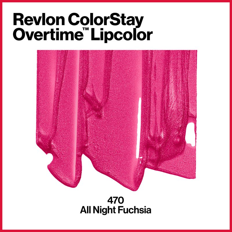 REVLON Liquid Lipstick with Clear Lip Gloss, ColorStay Face Makeup, Overtime Lipcolor, Dual Ended with Vitamin E in Pink, All Night Fuchsia (470), 0.07 Oz